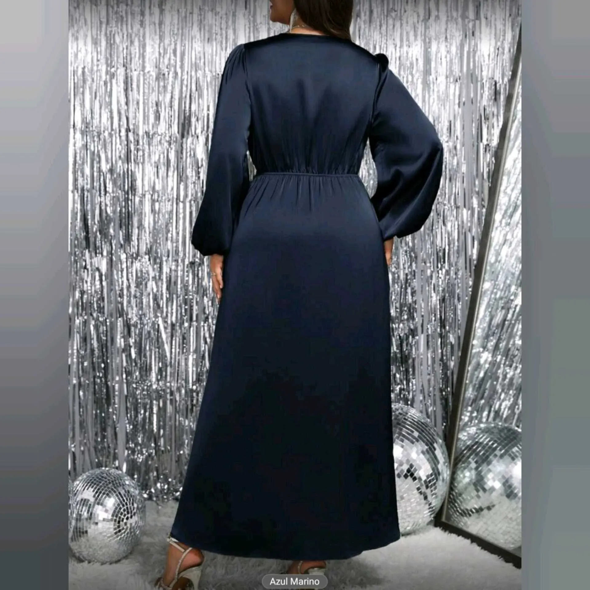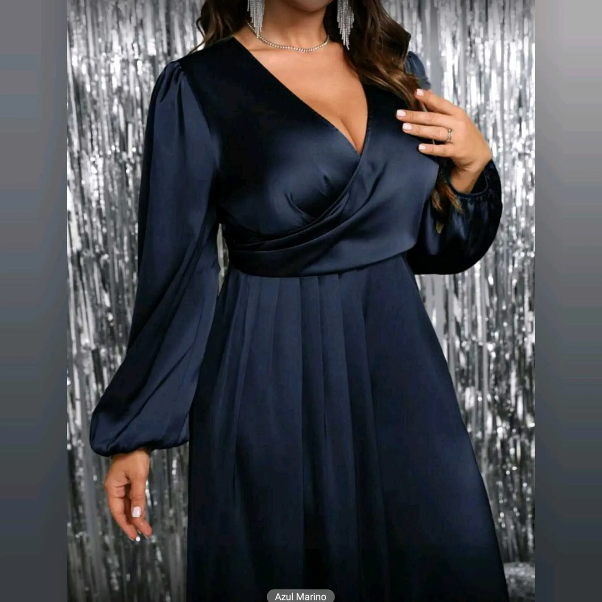 💙 Vestido Celure Satinado Azul Marino – Elegancia Curvy que InspiraUn diseño pensado para realzar tu belleza con distinción ✨Este vestido Celure combina la suavidad del satén liso con un escote cruzado en V, mangas abullonadas y una abertura lateral eleg