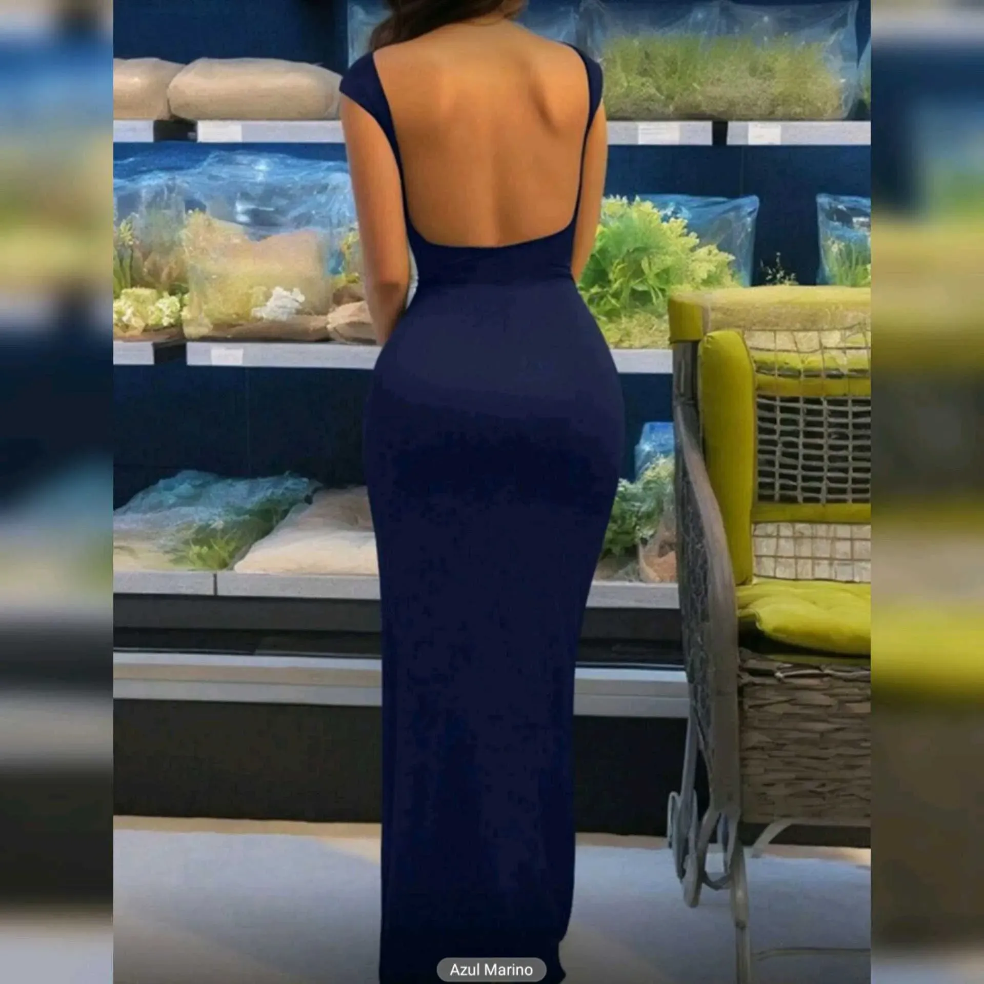 💙 Vestido Largo Azul Marino con Espalda Descubierta – Elegancia Sofisticada 💙Una prenda que combina lo clásico y lo moderno en un solo diseño ✨Este vestido largo azul marino destaca por su espalda descubierta y su ajuste ceñido, que realza la silueta co