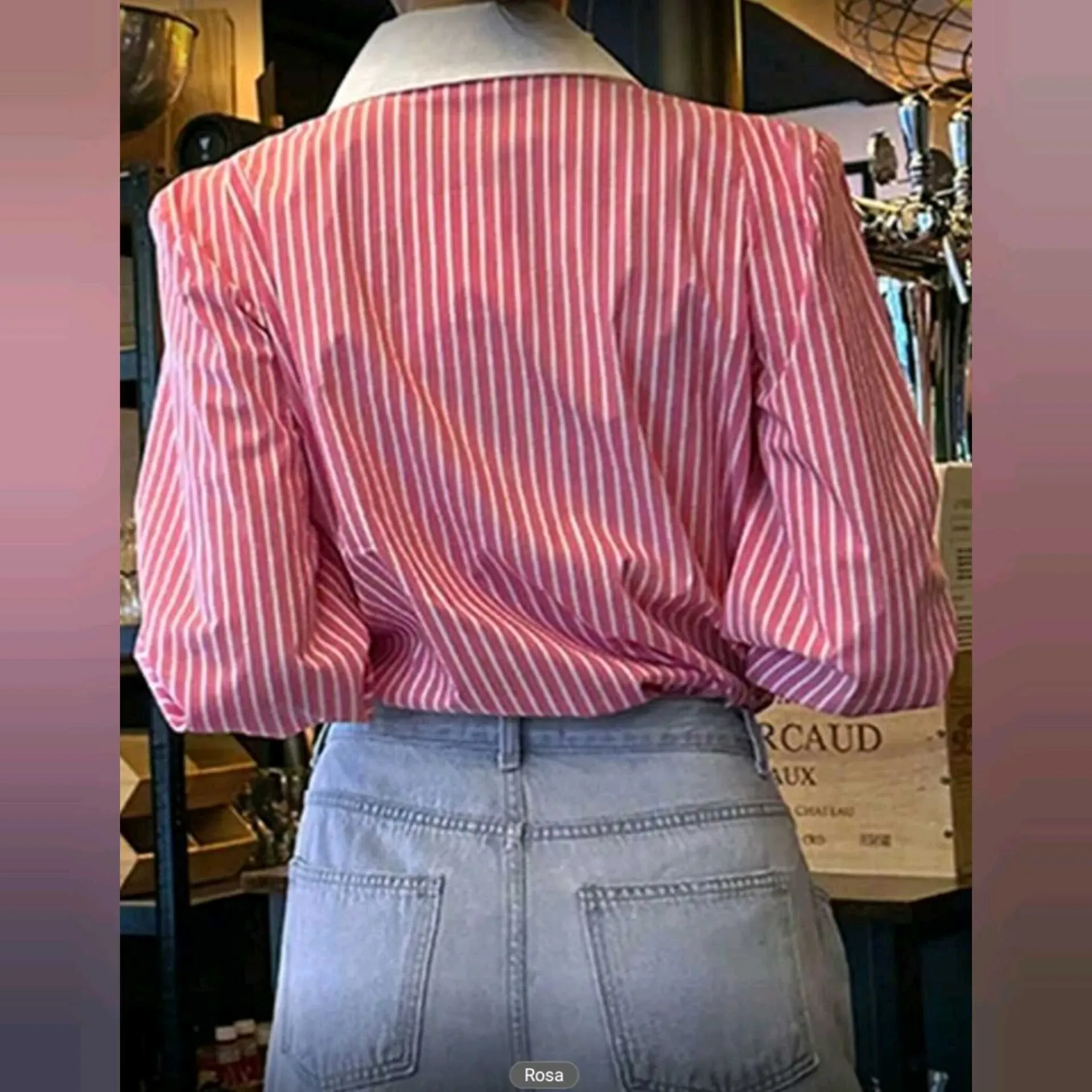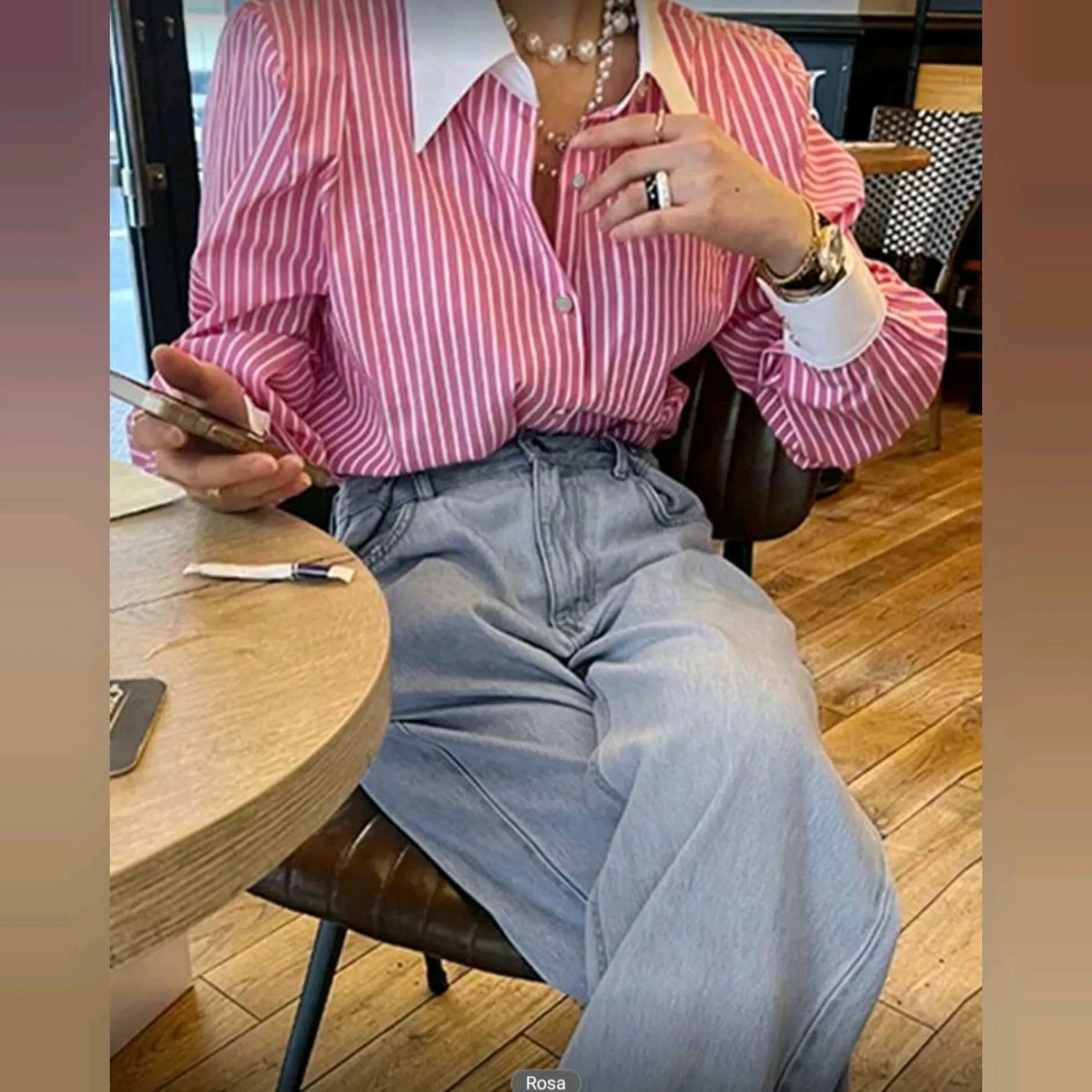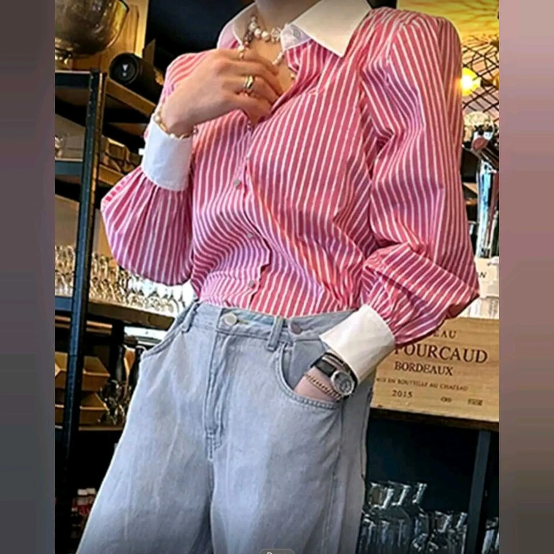 Blusa Camisera Rayada Fucsia con Cuello Blanco en Contraste ✨💗Romántica, elegante y con ese toque classy que eleva cualquier outfit 🤍Nuestra Blusa Camisera de Mujer en tono Rosa con Rayas Blancas combina delicadeza y estructura. El cuello y puños blanc