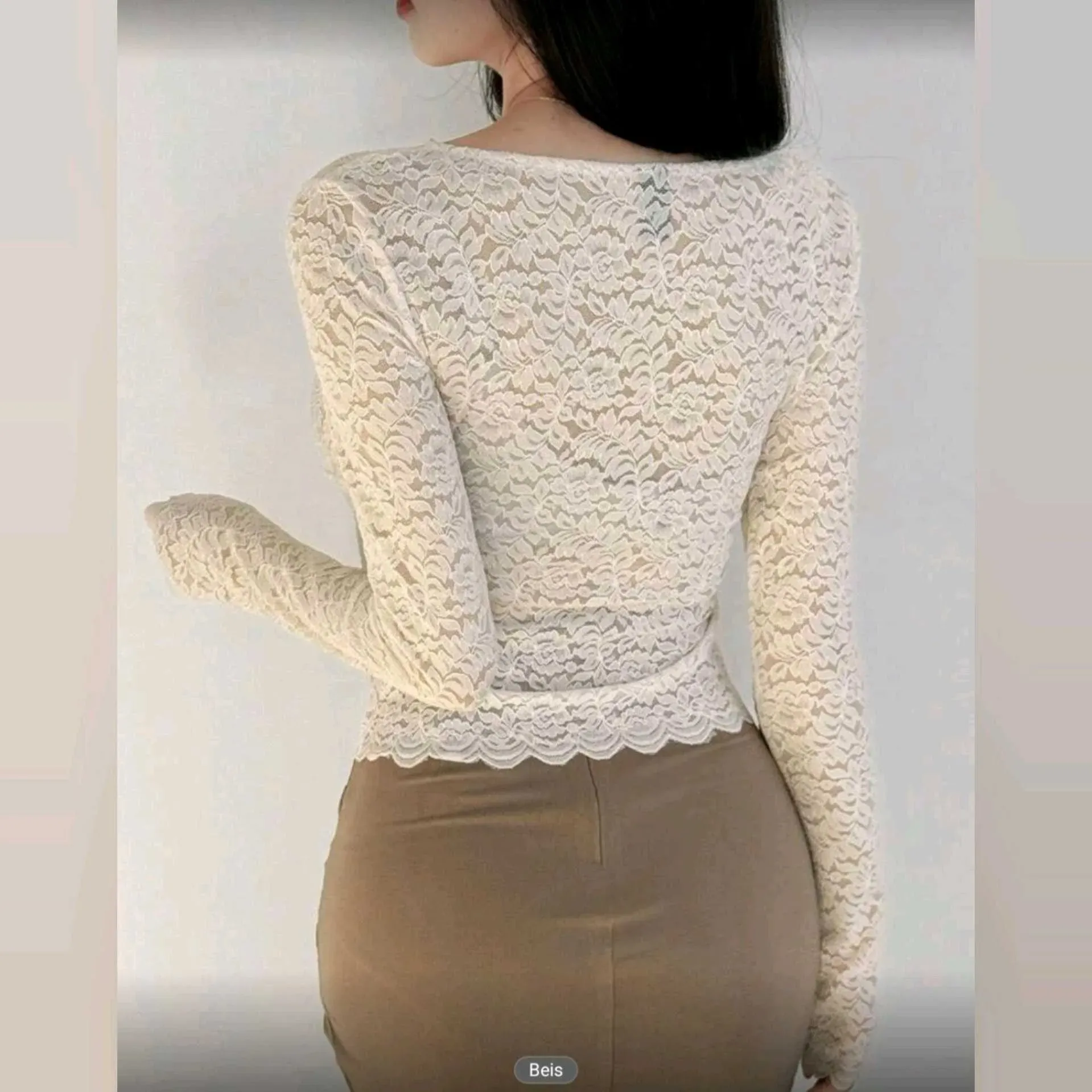Blusa DAZY Escote en V de Encaje Premium – Manga Larga con FestónElegancia, sutileza y encanto en una sola prenda ✨La blusa DAZY está confeccionada en encaje premium, con un diseño ceñido que resalta la figura y un hermoso escote en V con festón ondulado.