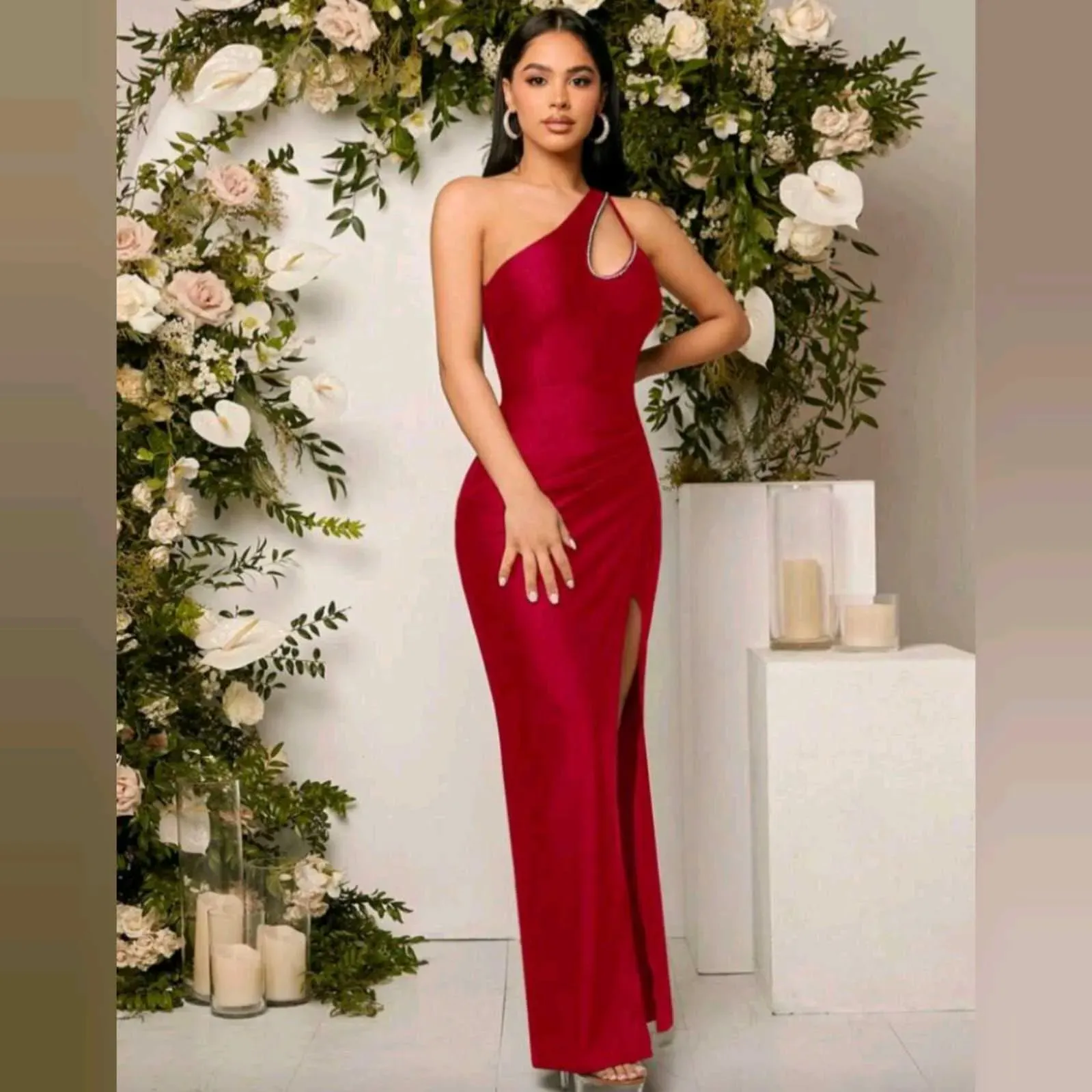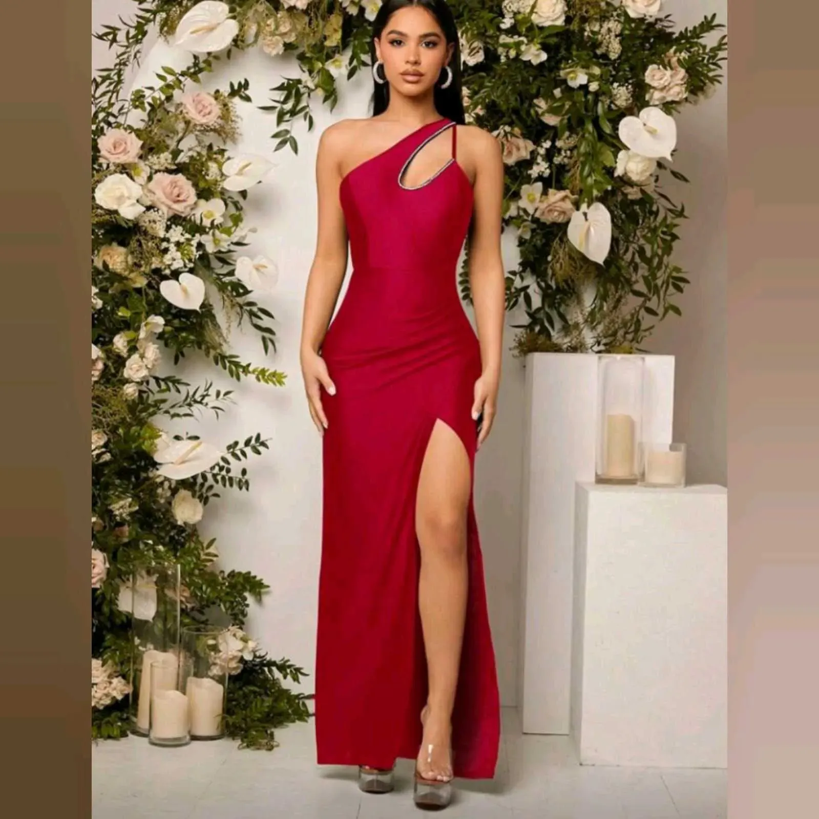 Vestido Largo Asimétrico y Ligero– Glamour y Confianza TotalUn diseño moderno que combina elegancia y poder femenino ✨Este vestido largo rojo con escote de un solo hombro y abertura lateral es sinónimo de estilo audaz y sofisticado. Su corte ajustado rea