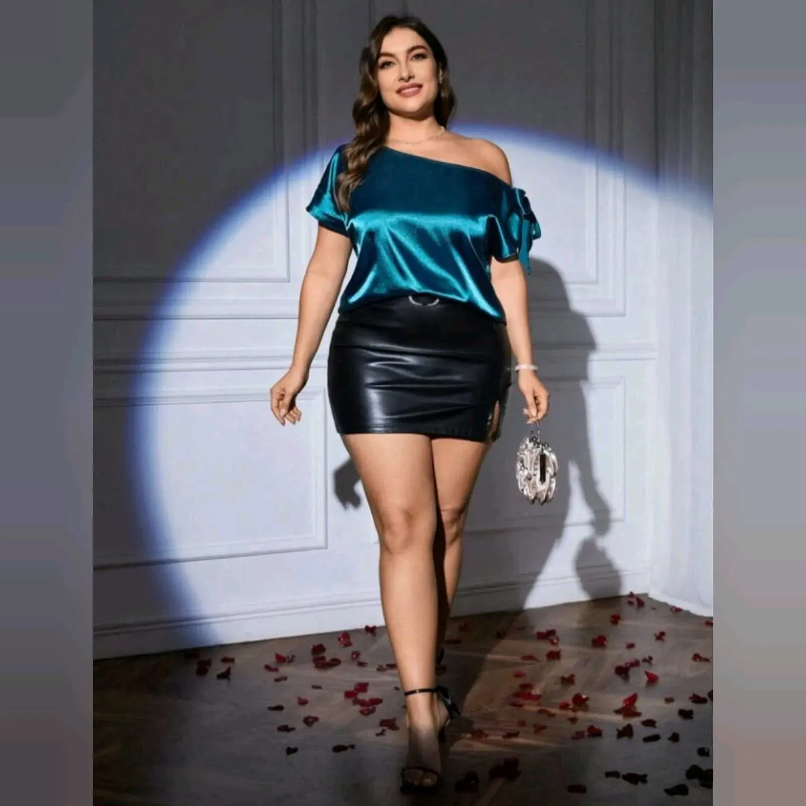 💎 Blusa Satinada Azul Turquesa con detalle de Moño– Curvy Plus Edition 💎Brilla con un toque de elegancia moderna 💙Esta blusa satinada hombro caído con moño lateral es perfecta para destacar en eventos o salidas nocturnas. Su textura suave y brillante r