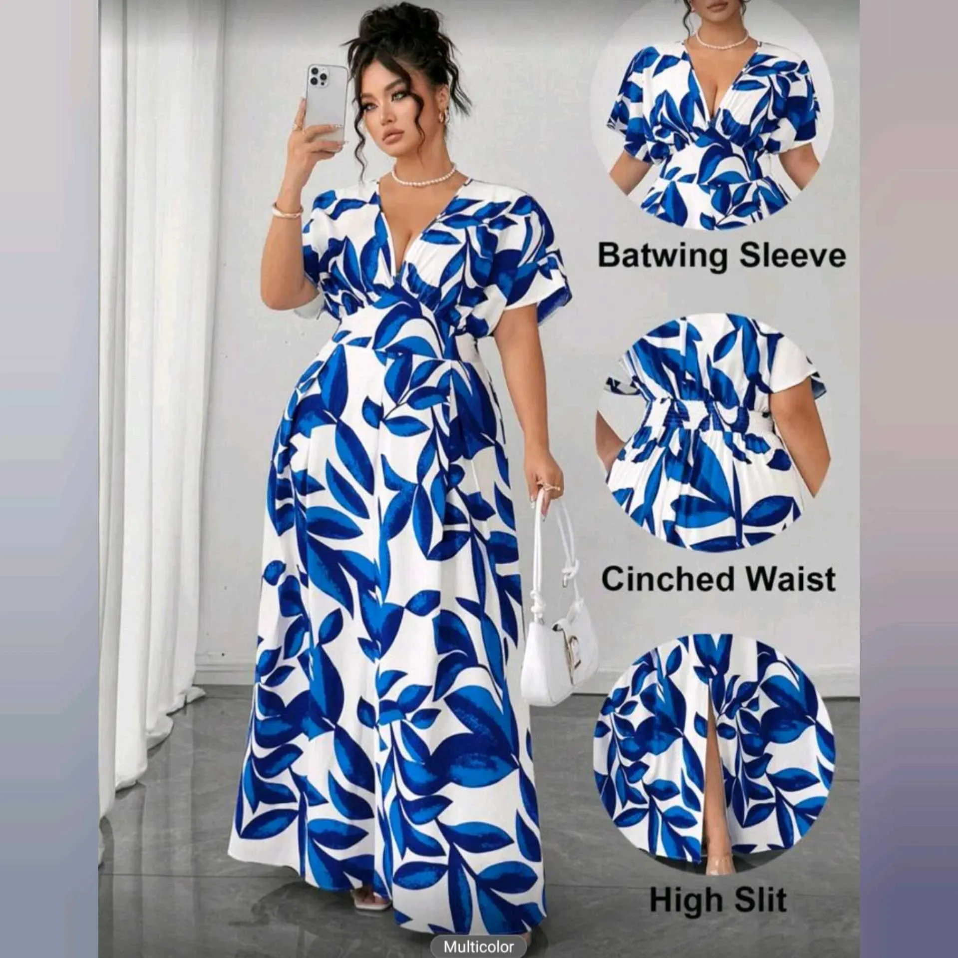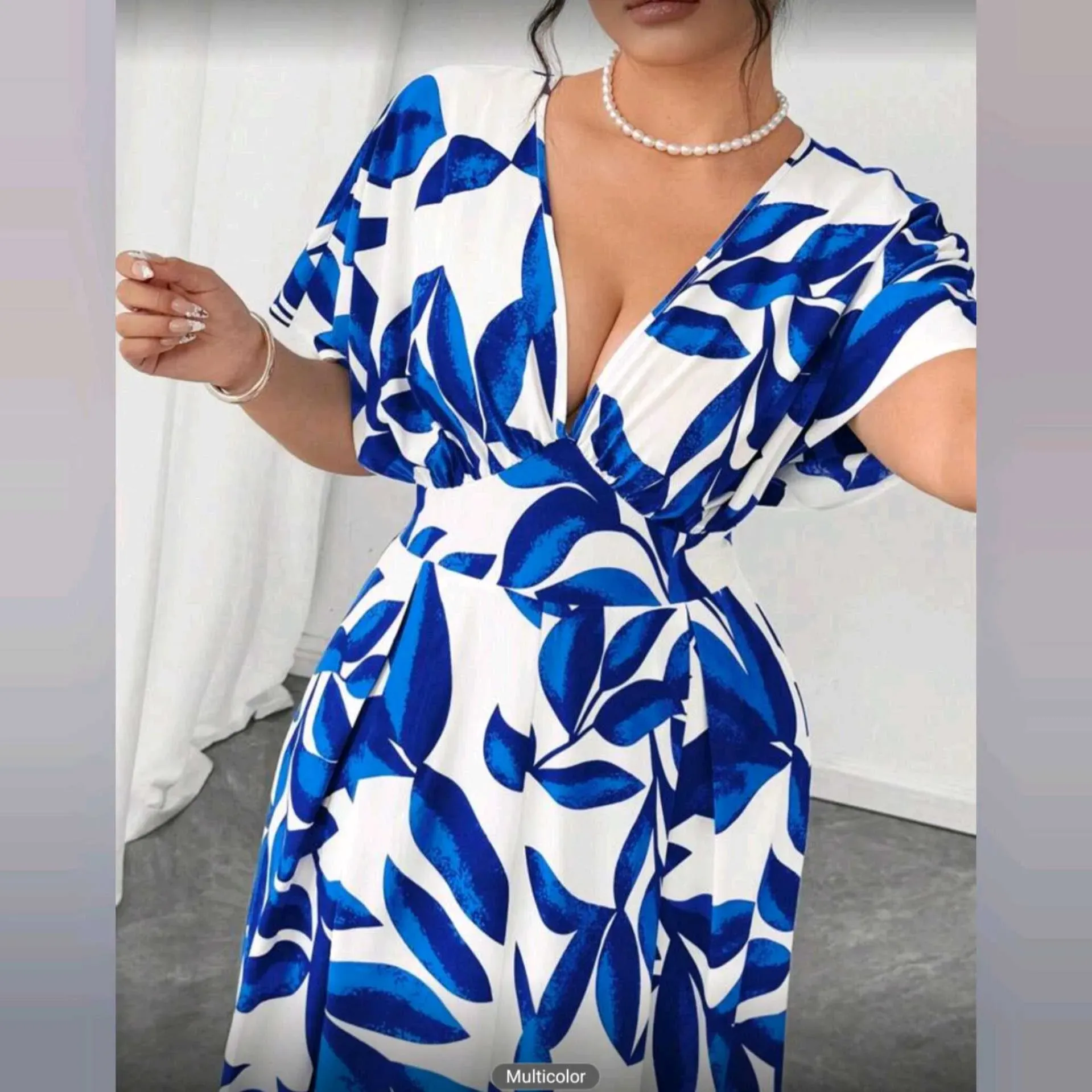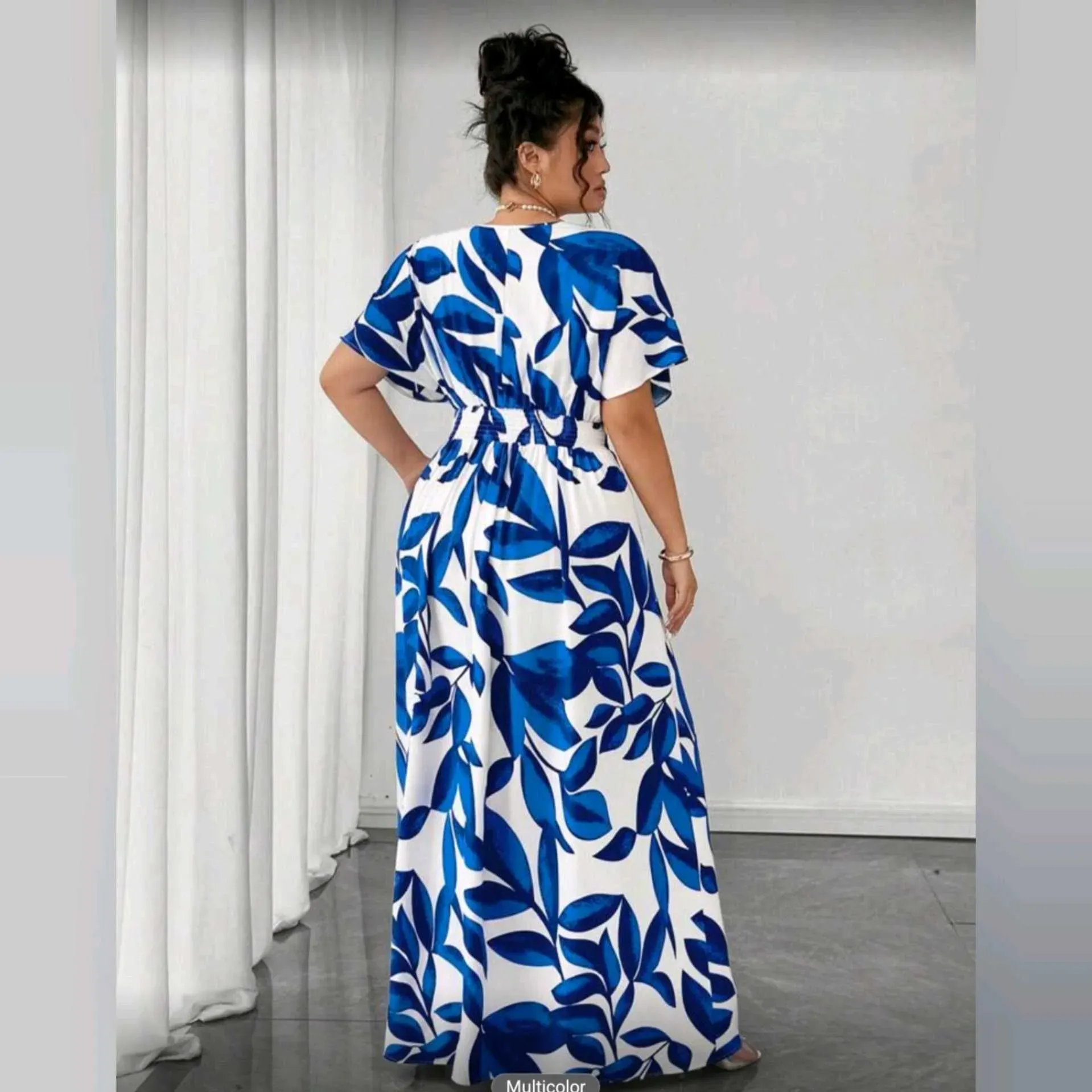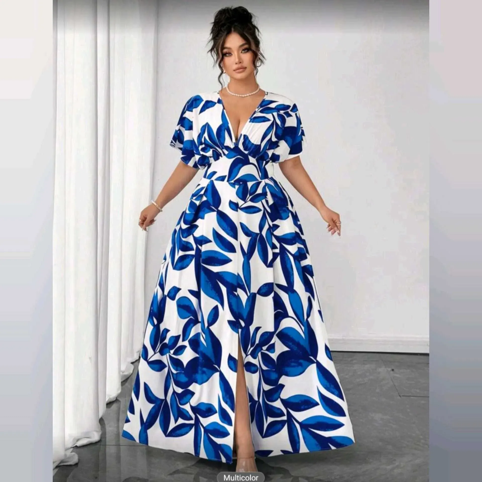 💙 Vestido Largo Floral Azul — Elenzga Curve CollectionFrescura, elegancia y movimiento en una sola prenda ✨Este vestido largo con estampado azul vibrante sobre fondo blanco es la definición perfecta de un look veraniego con toque sofisticado.Su escote en