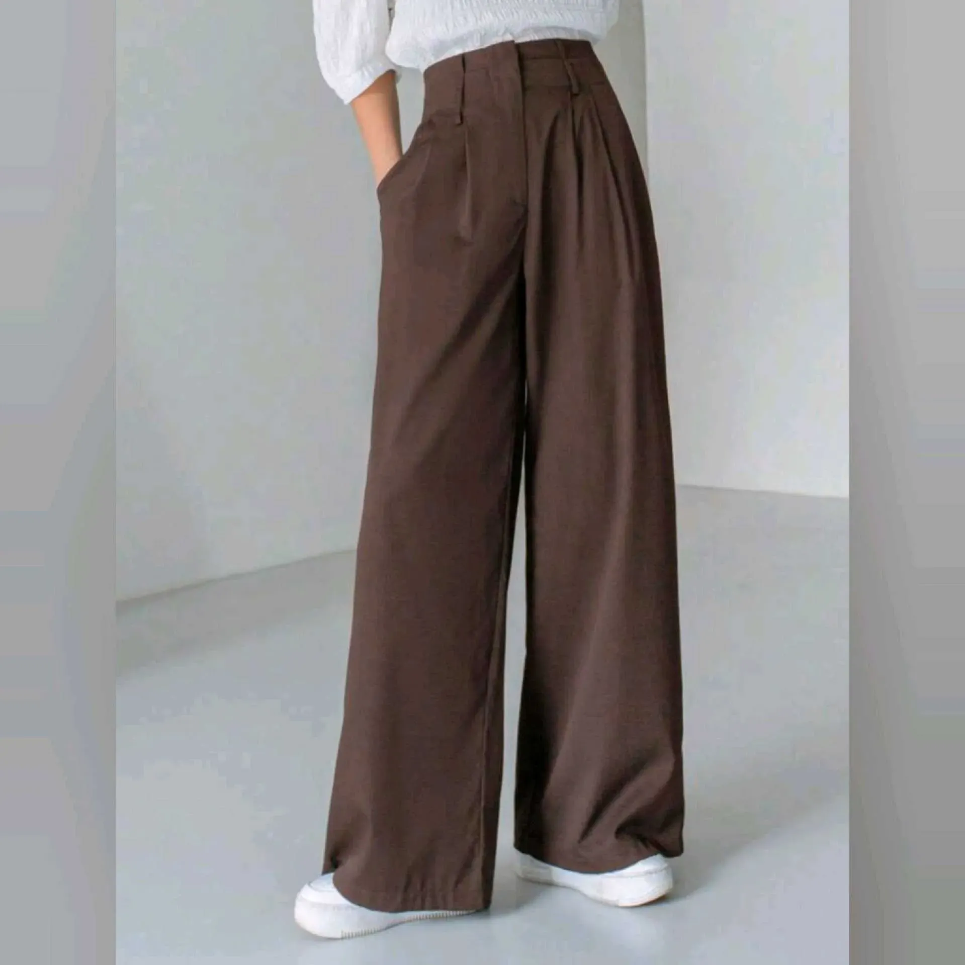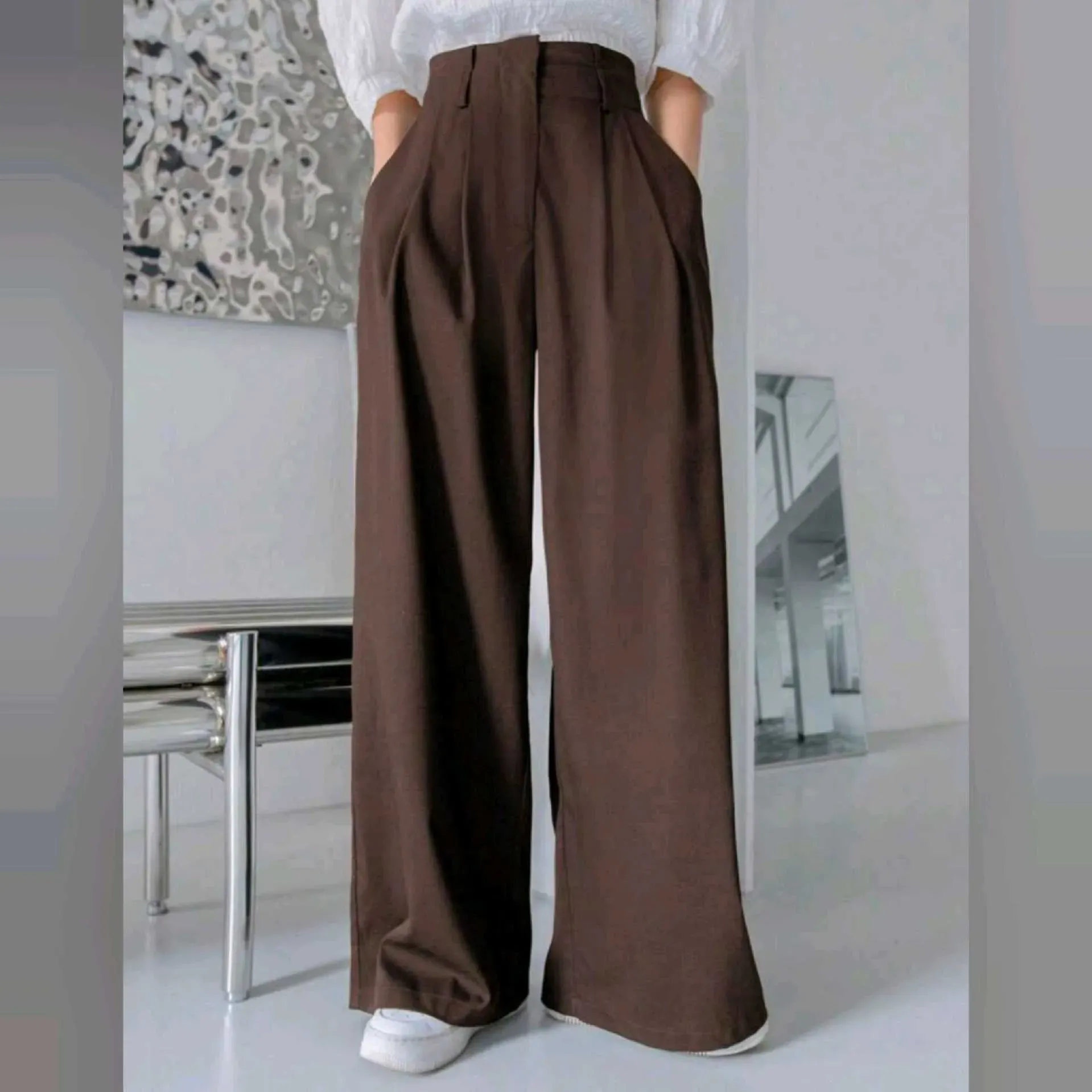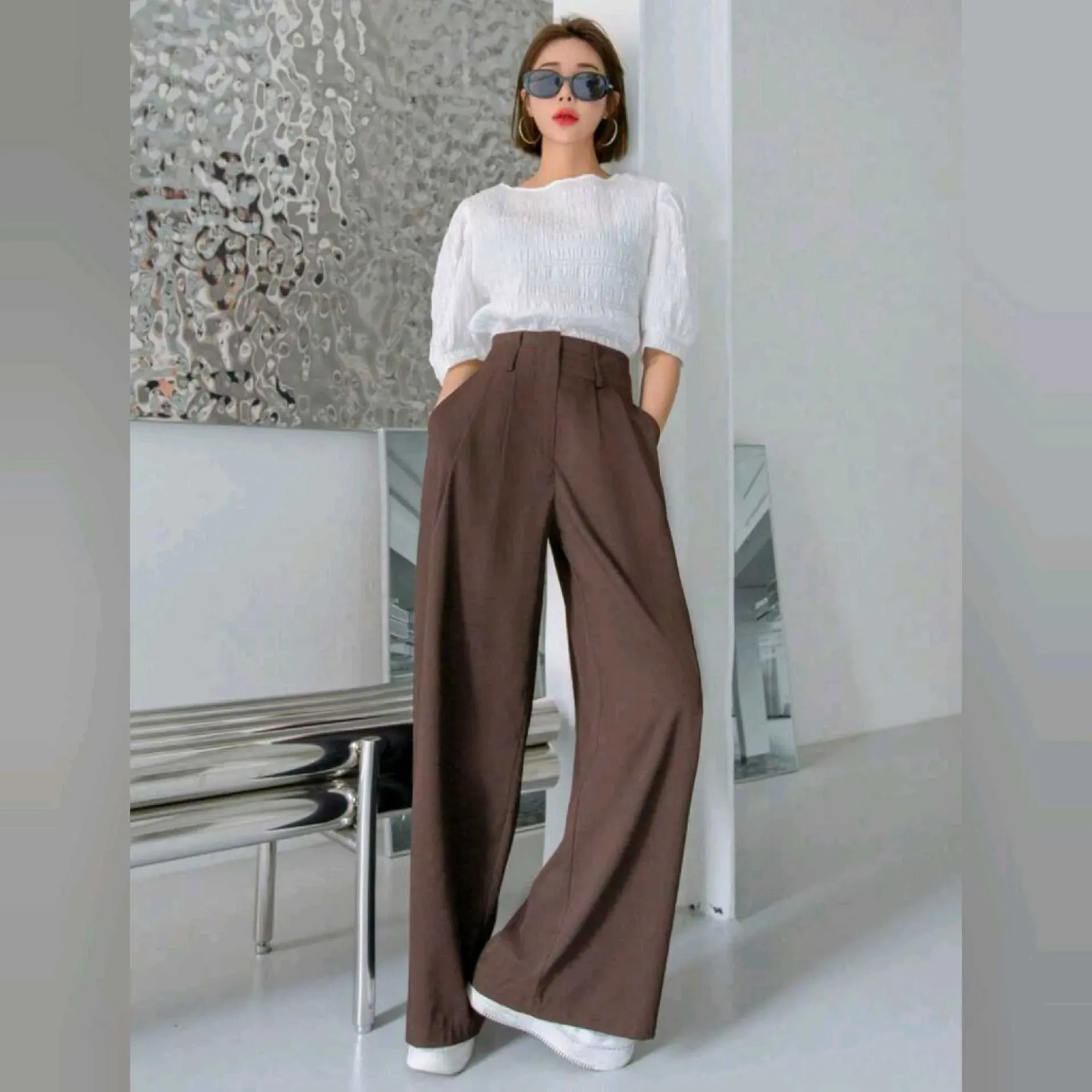 Pantalón Wide Leg Café Integral – Estilo Elegante Casual Un pantalón versátil y sofisticado que no puede faltar en tu clóset:✔ Corte Wide Leg (pierna ancha) con caída fluida que aporta estilo y comodidad.✔ Cintura alta con pliegues que estilizan la siluet